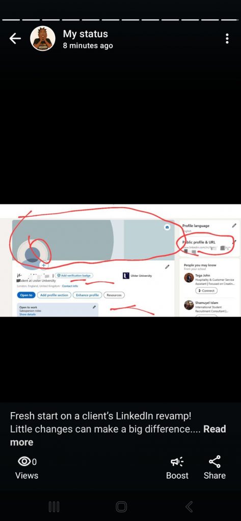Fresh start on a clientโ€™s LinkedIn revamp!